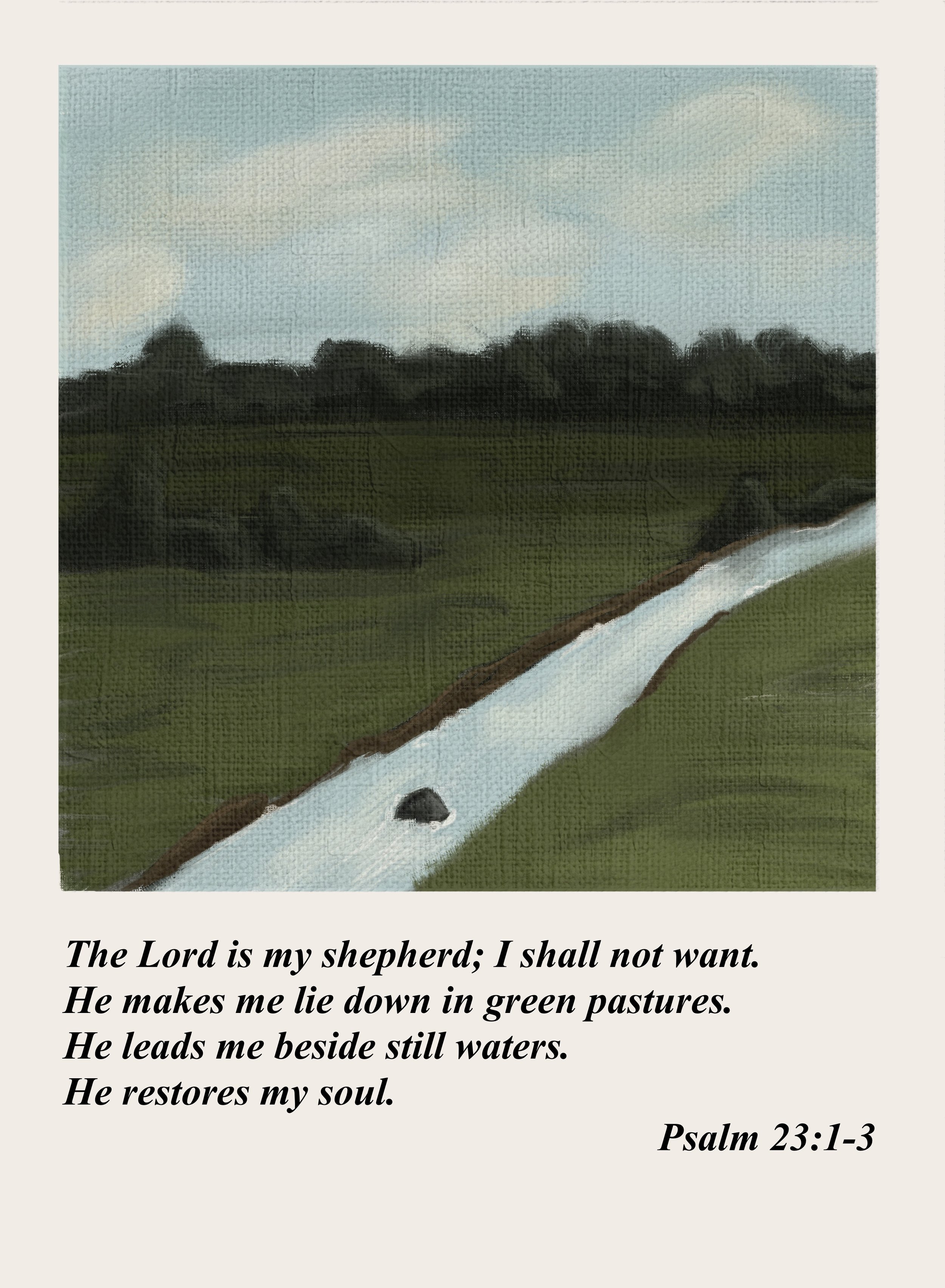 Psalm 23:1-3 with Painting PRINT from $5.00 Select Size 4x6 5x7 Add To Cart Added! “The Sower” — PRINT from $5.00 Select Size 4x6 5x7 Add To Cart Added! “Meeting Place for Thirsting Souls” — PRINT from $5.00 Select Size 4x6 5x7 Add To Cart Added! “Apple of His Eye” — PRINT from $5.00 Select Size 4x6 5x7 Add To Cart Added! “Folks Forest” — PRINT from $5.00 Select Size 4x6 5x7 Add To Cart Added! Joyful Sacrifice (Mark11:8) — PRINT from $5.00 Select Size 4x6 5x7 Add To Cart Added! “Window to Her Soul” — Print from $5.00 Select Size 4x6 5x7 Add To Cart Added! “Light in the Darkness” — PRINT from $5.00 Select Size 4x6 5x7 Add To Cart Added! The Overflow — PRINT from $5.00 Select Size 4x6 5x7 Add To Cart Added!